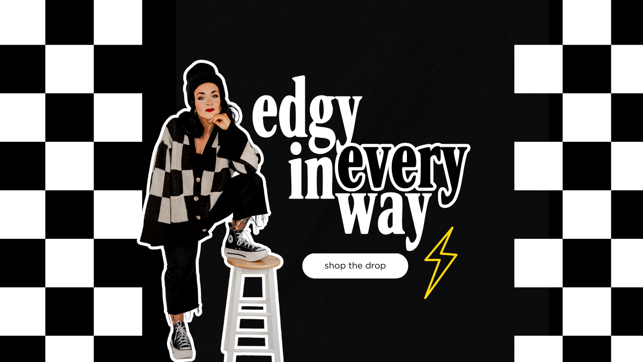 CHECKERBOARD MISFIT CHUNKY KNIT CARDIGAN IN BLACK + WHITE