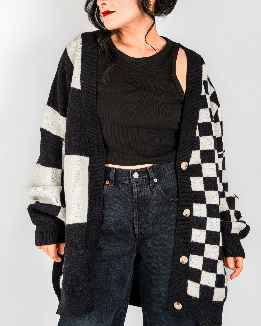 BOARDWALK OVERSIZED CHECKERBOARD CARDIGAN IN BLACK + WHITE
